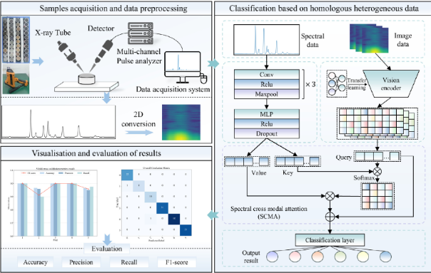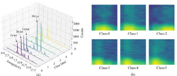 2. 2D 图像流:将 XRF 信号经短时傅里叶变换/时频谱映射成 2D 图像(spectrogram),送入基于 EfficientNet 等预训练视觉网络的图像分支进行纹理/空间特征提取。
